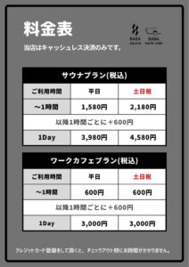 サウナプランにつきましては、基本料金を+100円とさせていただきます。